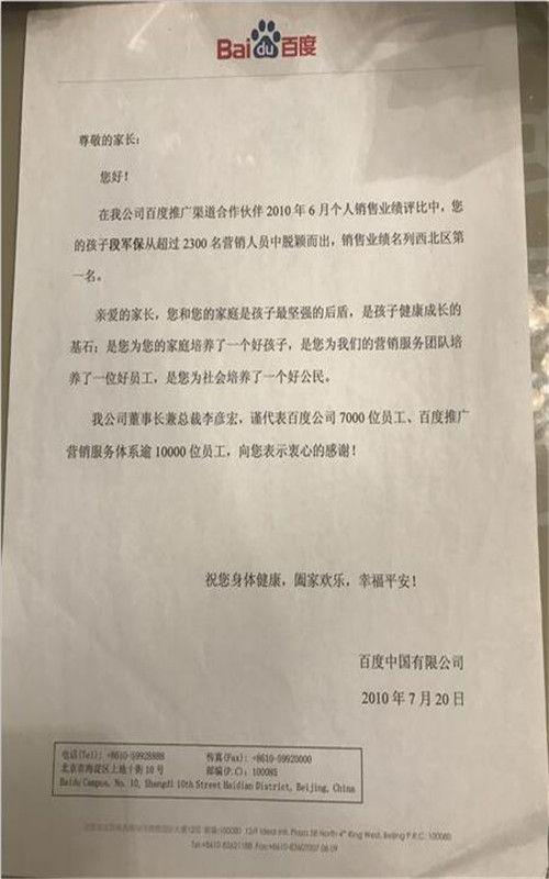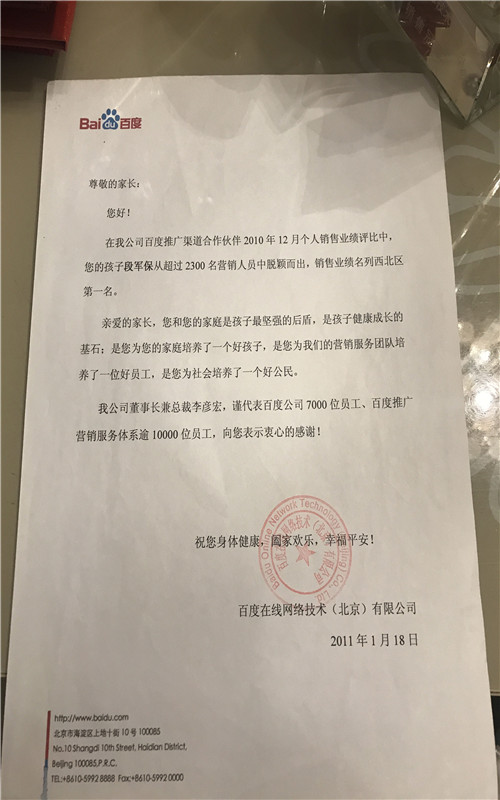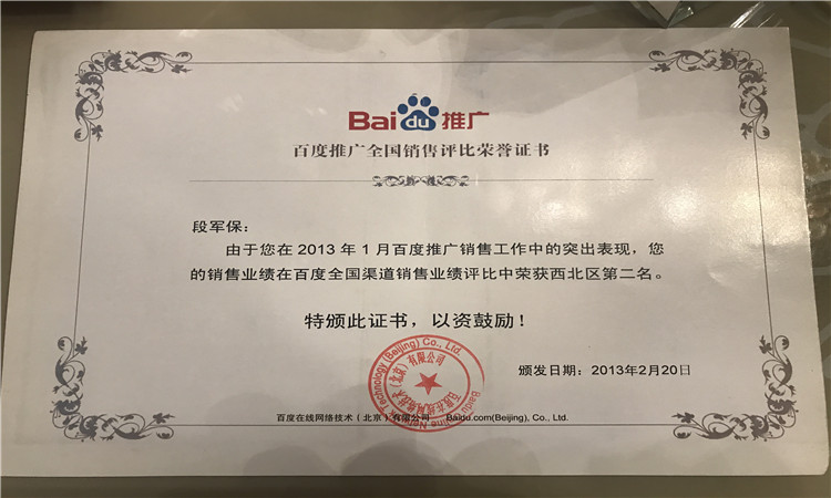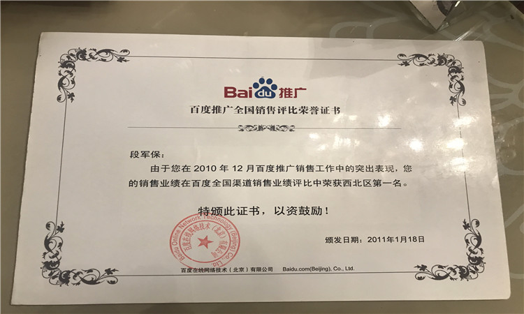 2010年11月销售业绩西北区第二名